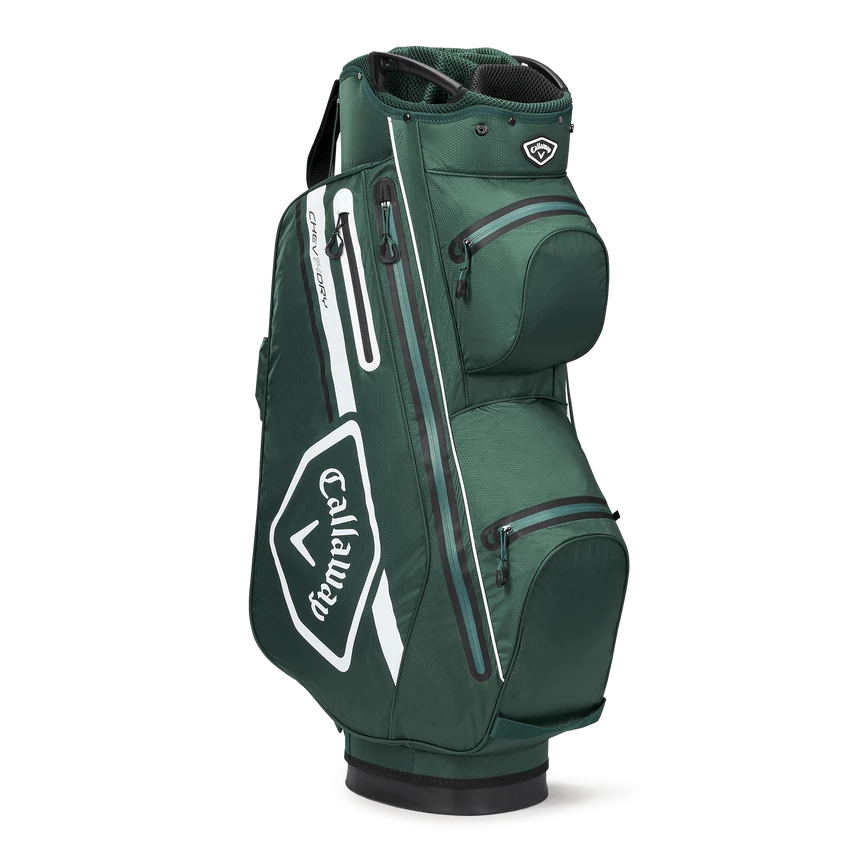 The updated Callaway Chev Dry 14-way Cart Bag is made of water-resistant material keeping your valuables and golf clubs perfectly dry while out on the course. Ample storage stylish design with bold graphics keeps you stylish dry in all weather conditions.
