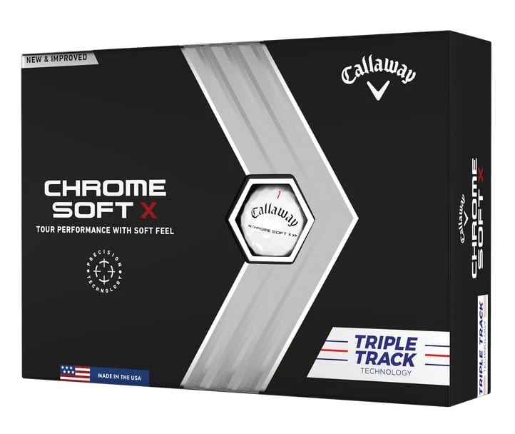Callaway Chrome Soft Golf Balls are better for everyone, from amateurs to major winners. Now with Callaway’s proprietary new Precision Technology, the Callaway Chrome Soft X Triple Track Golf Ball is faster off the driver with a spin profile that’s optimized for Tour pros and better players, plus Callaway major-winning Triple Track Technology.