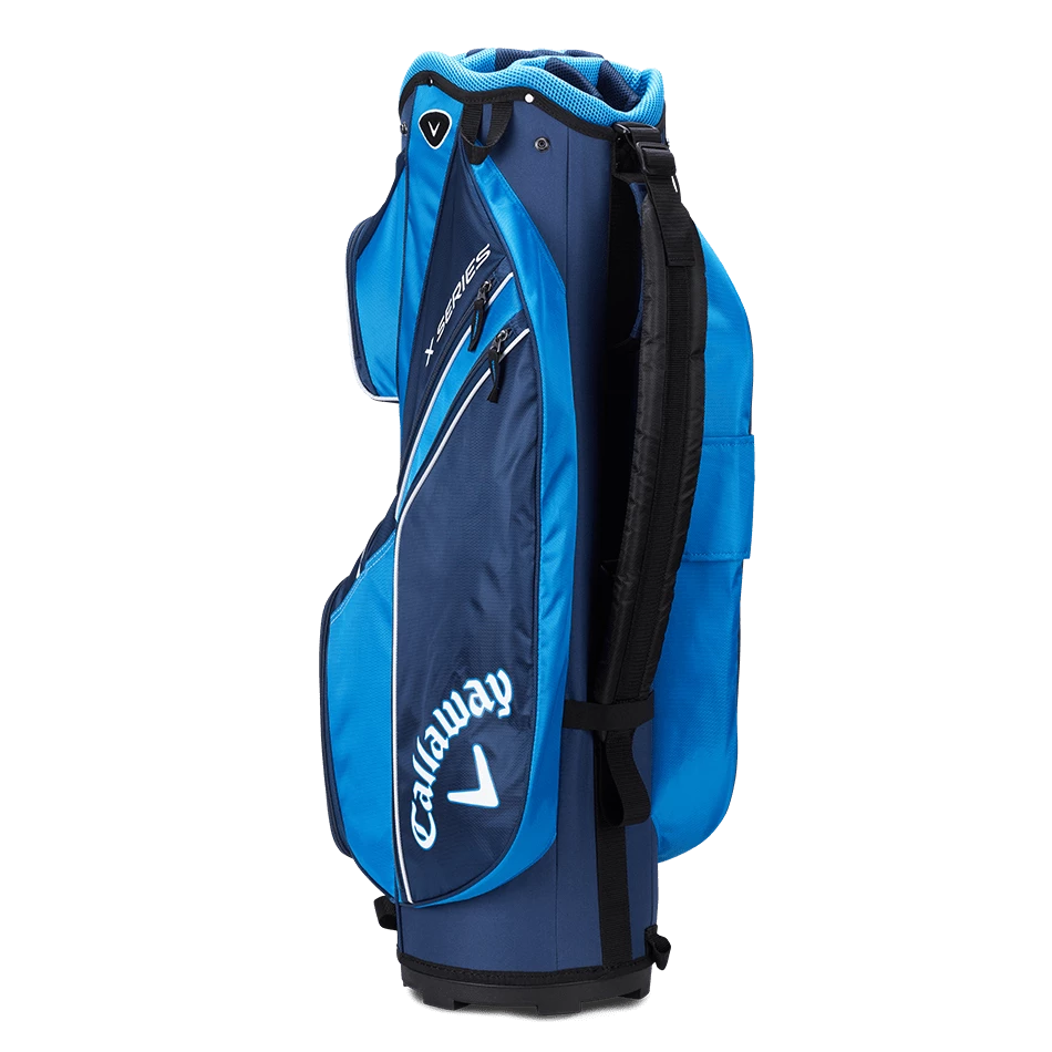 The X Series Cart Bag from Callaway Golf Features 7 pockets and front access pockets as well as 14-way top. Easily manoeuvred and easy to use the X Series Cart Bag is a great addition to any golfers current equipment.