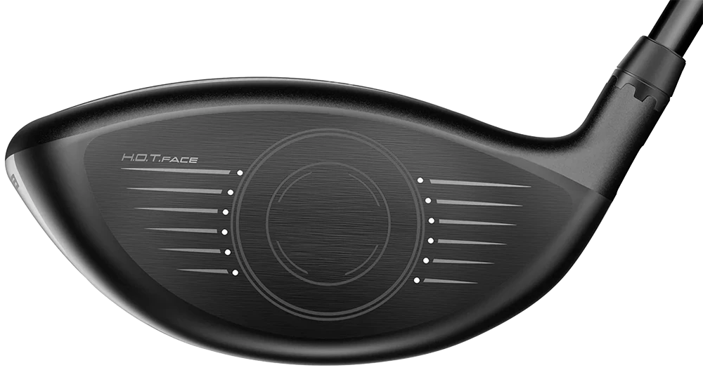 A forged PWRSHELL face insert maximizes flexibility for faster ball speed and higher launch. A H.O.T Face design uses artificial intelligence to create a variable thickness pattern that delivers more efficient speed and spin across the face.