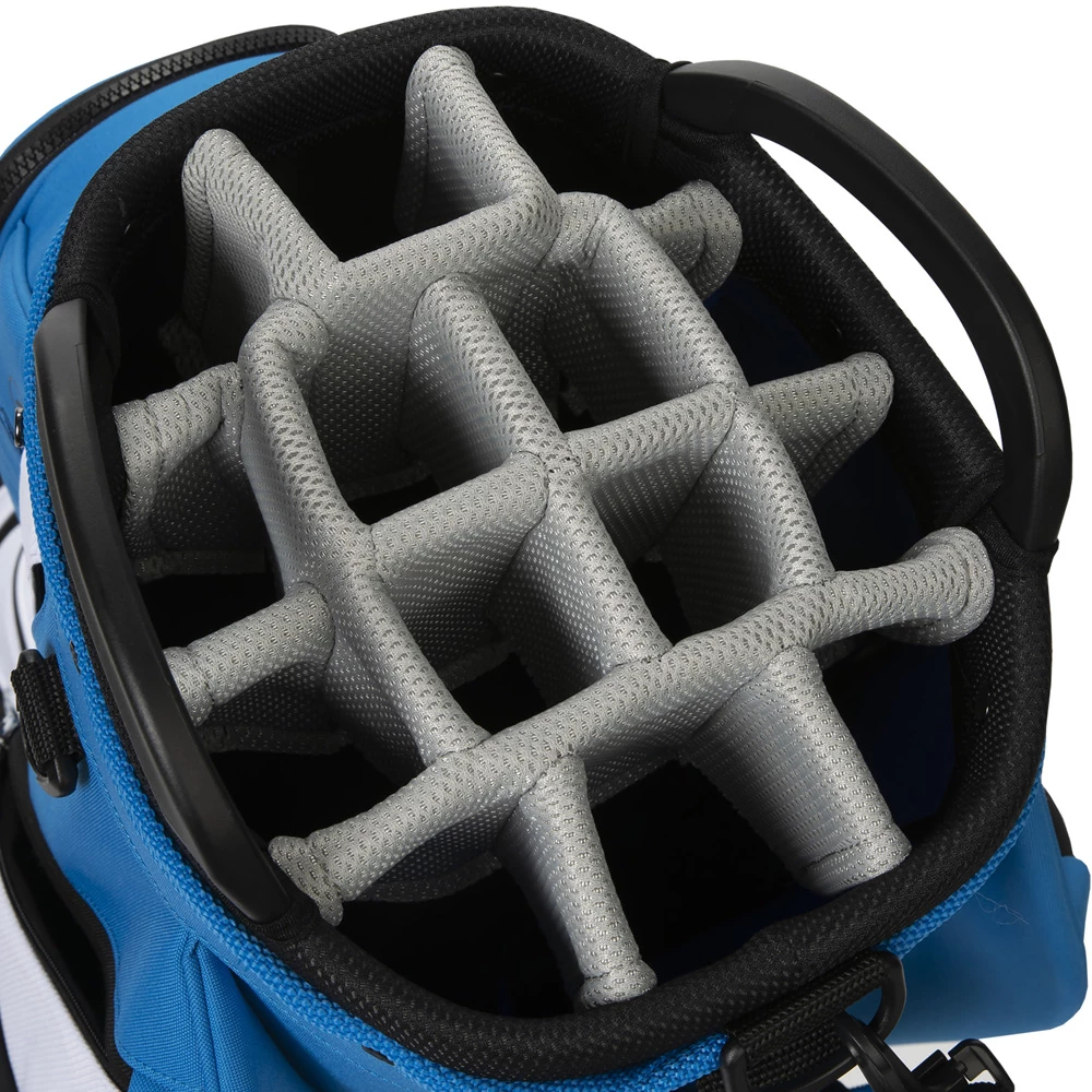 The COBRA Ultralight Pro Cart Bag is an organisational genius coming with a 14 way top to separate every club you could think of, it even has 3 full length driver slots. This bag is made with 100% polyester gives it a light and manoeuvrable structure and gives it a pristine print and finish. This bag gives every golfer a way of staying in control of where everything belongs and how they want to have their bag. It is available in 6 different colours weather you want loud bright colours or dark and mysterious Cobra offer them both. Cobra have a lot to offer with this bag including features like: