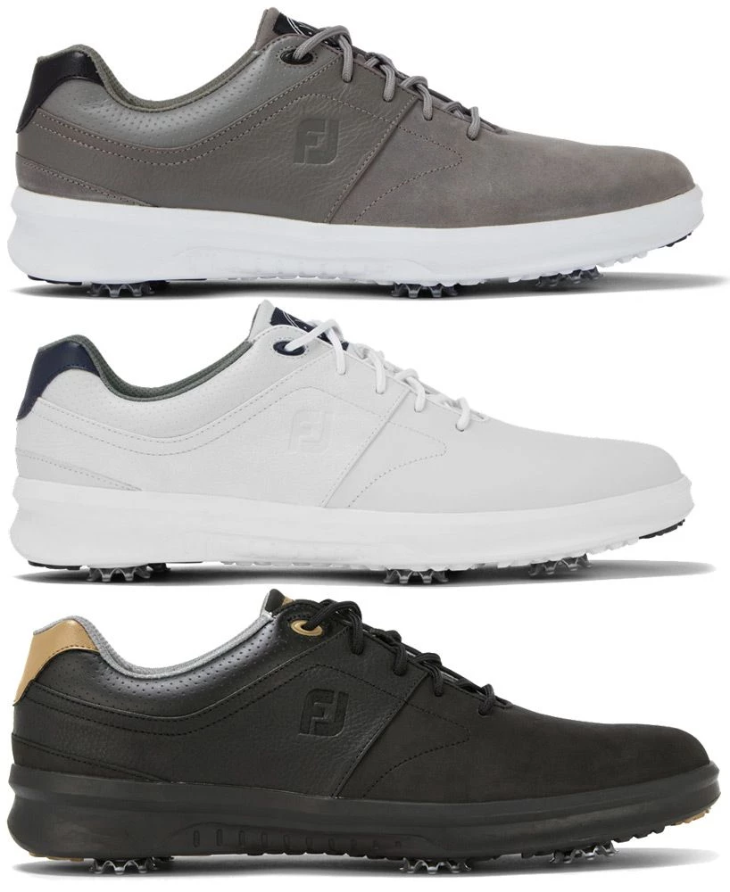 The Contour Golf Shoe from Footjoy features a turf gripping advantage, cup sole, insert system, a cushioned fit and Contour last. A great pair of waterproof shoes designed to keep your feet dry and comfortable out on the course.