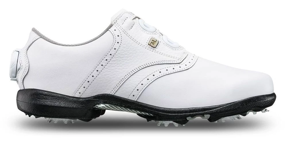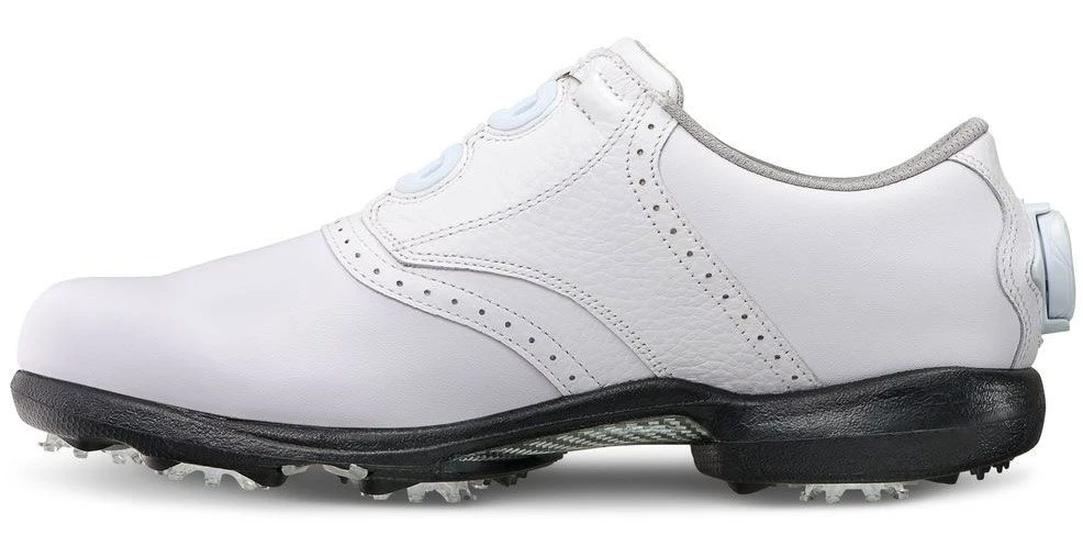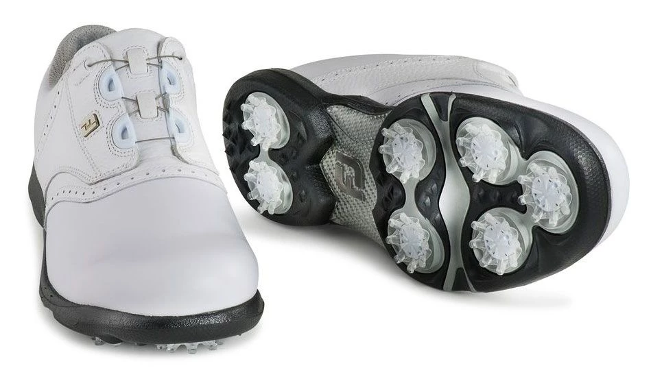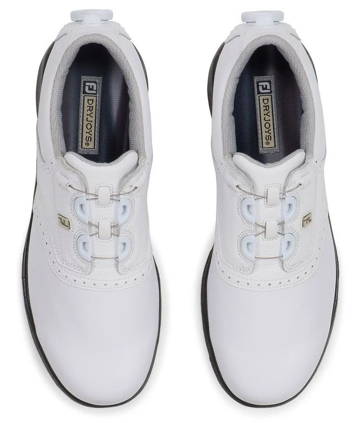 The FootJoy DryJoys Boa Women Golf Shoes are for athletic golfers made in soft full-grain leather in the upper material and an inner lining made of DriLex material and a PU-FitBed insole which will give you the highest comfort in the shoe.