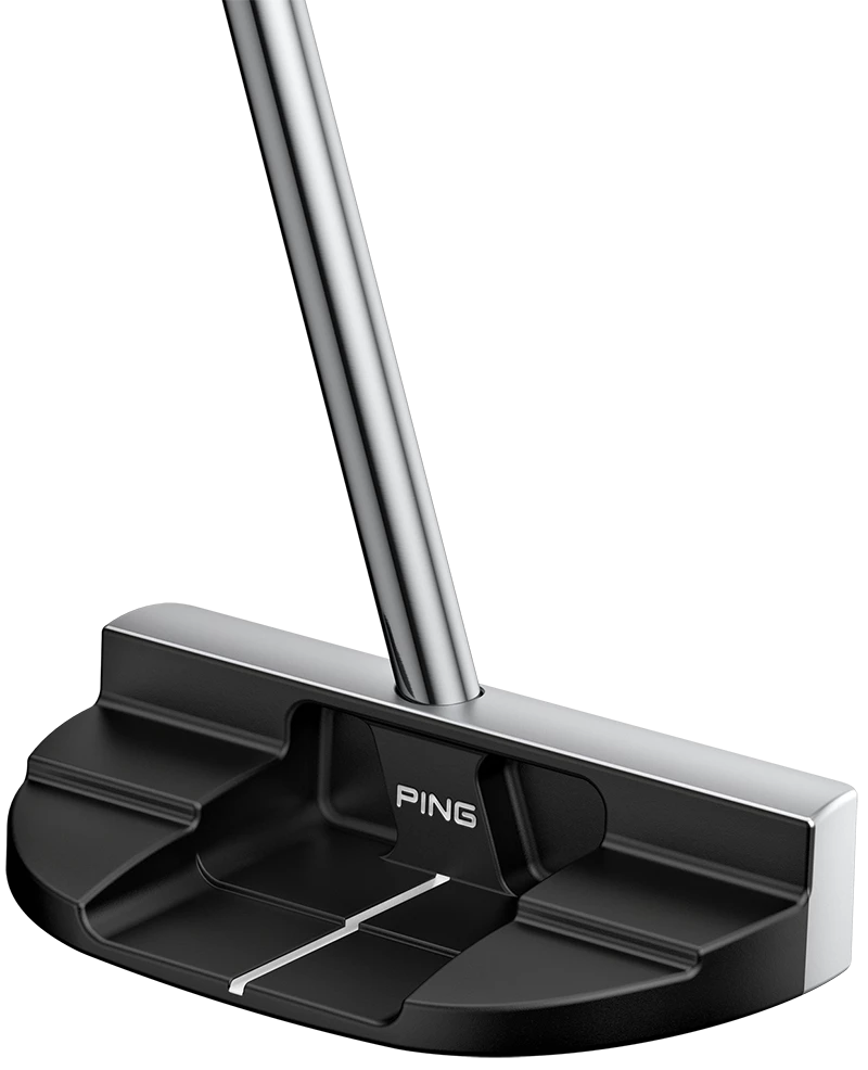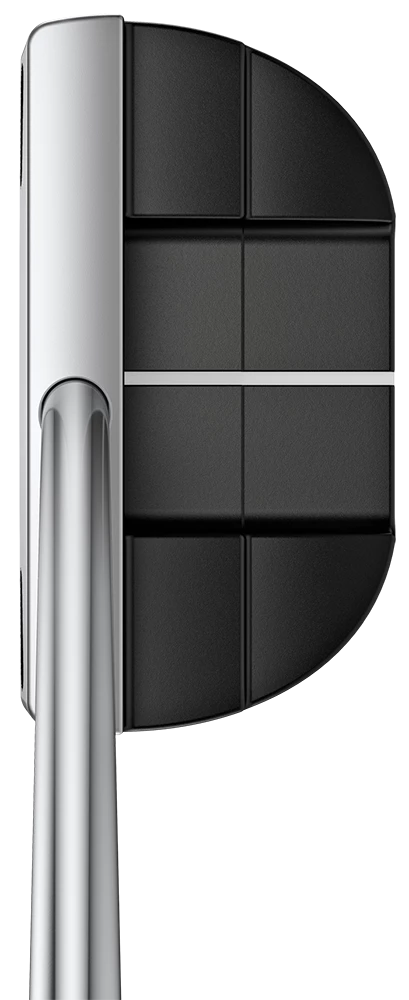 The center-shafted head offers a visual symmetry, and tungsten toe-heel weights ensure stability for improved accuracy. The shallow milled face provides a firmer response and consistent ball speed. Using color blocking, a platinum topline contrasts against the black cavity to draw the focus forward.