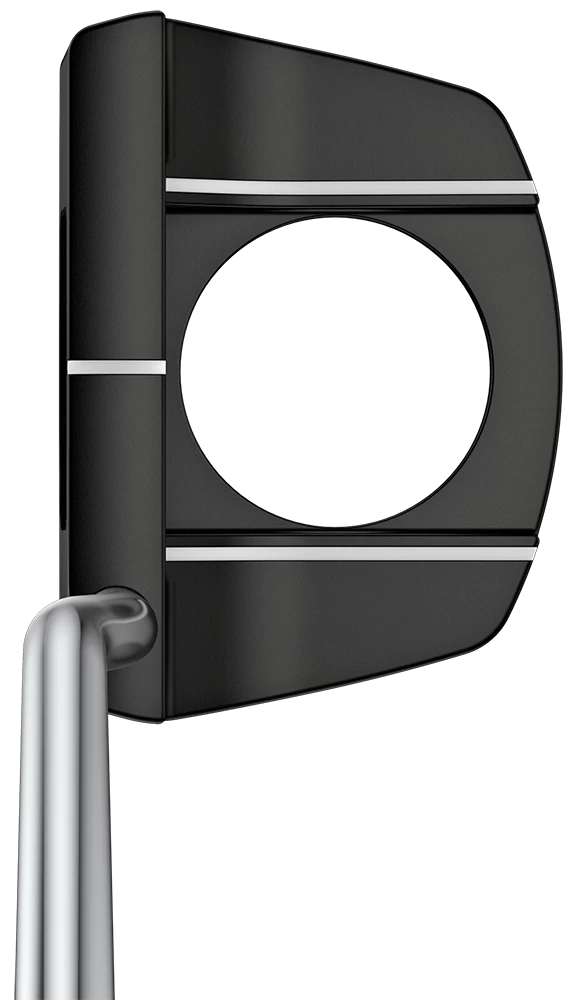 A trio of white lines, ball-width cavity floor and a ball-pickup center cutout (for gimmes) distinguish the easy-to-aim Tyne G. The cutout redistributes mass to the perimeter for added stability and forgiveness to improve accuracy. A PEBAX insert with shallow milled surround ensures a softer feel and consistent ball speed with pleasing acoustics.