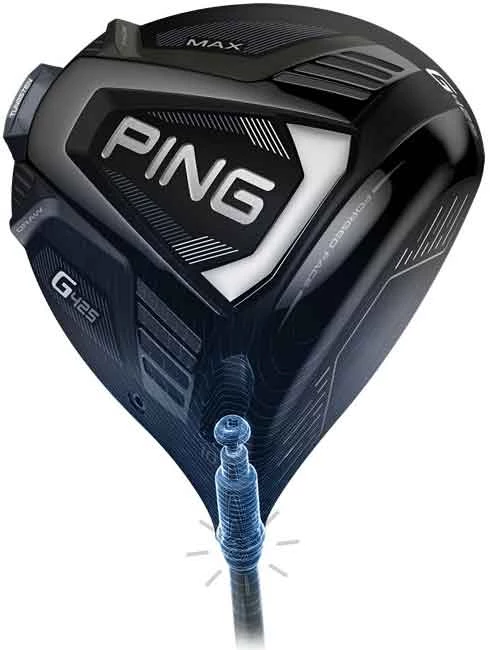 G425 MAX From PING elevates the moment of inertia to PING’s highest level in history. Forgiveness comes mainly from a 26-gram tungsten movable weight, made possible by weight savings from advancements in the driver’s dragonfly crown technology. The CG-shifting weight can be set in neutral, draw or fade. A T9S+ forged face increases flexing for adding distance. Available in 9°, 10.5° and 12°.Â