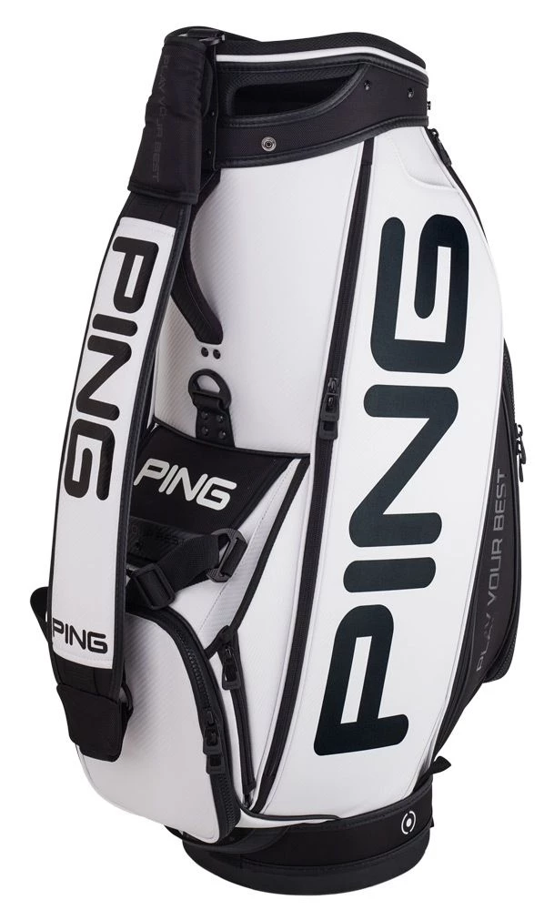 The Tour Staff bag from PING features 9 pockets, a side handle and a thick cushioned shoulder strap. A great bag with lots of storage and features to make it easy and comfortable to carry.