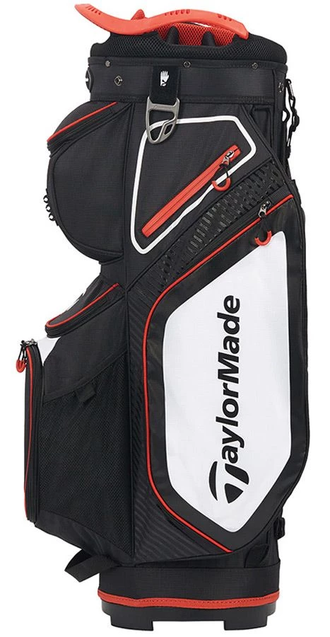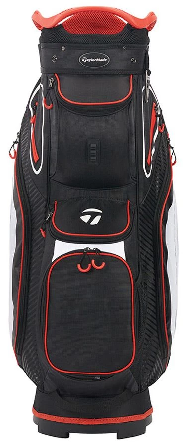 TaylorMade Pro Cart 8.0 , 10” Top Cart Bag , 14-way top with three grab handles, includes Integrated grab handle for trolley user with Key lock base to keep bag firmly on the trolley,All pockets face forward for easy access.8 strategically placed pockets including Fur-lined valuables pocket , Drinks pocket , Ball pocket, and more.Includes Padded shoulder strap for easy carrying.