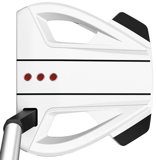 The science of white. White is the most reflective color, which allows the human eye to clearly see the path of the stroke. The new shape is designed to allow golfers to use the front of the face for alignment and the two rails to center the golf ball. Three strategically positioned dots deliver a premium aesthetic and functional aiming tool.