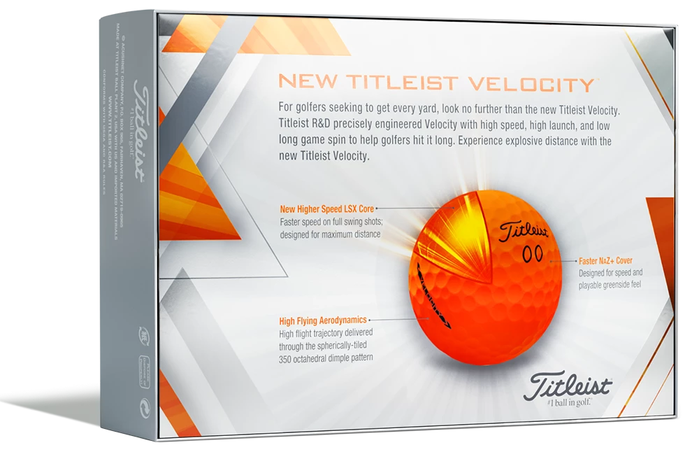 Bring full throttle distance to your game with New Titleist® Velocity™ golf balls. Engineered for high speed, high launch and low long game spin for explosive distance.