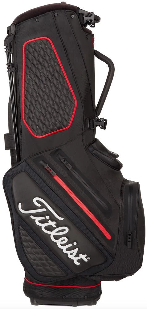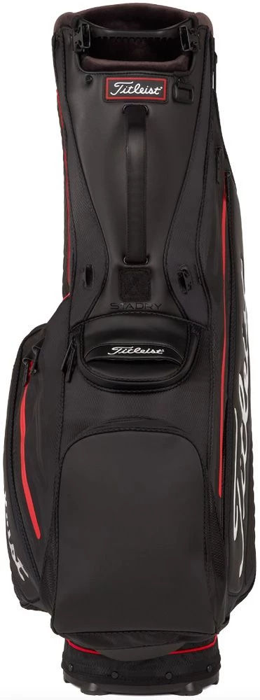The Jet Black Premium Stadry Stand Bag from Titleist features waterproof materials, seam-sealed waterproof zips, easily adjustable straps and plenty of storage for out on the course.