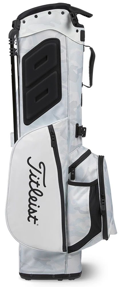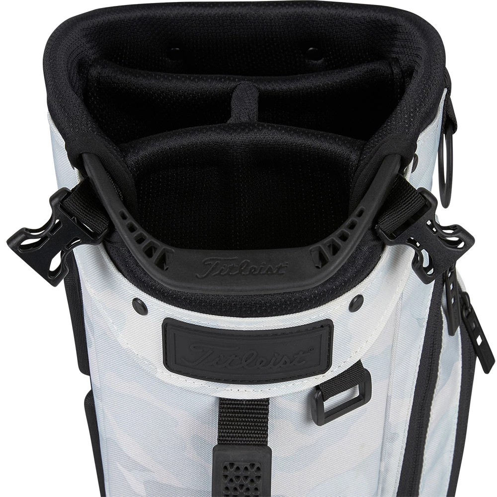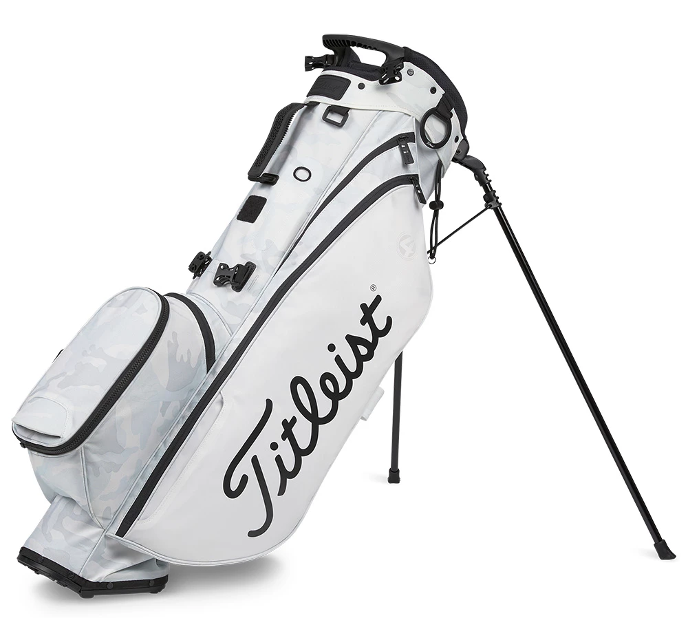 The White Out Players 4 Camo Stand Bag from Titleist features a unique white and grey camouflage guaranteed to stand out on the course.